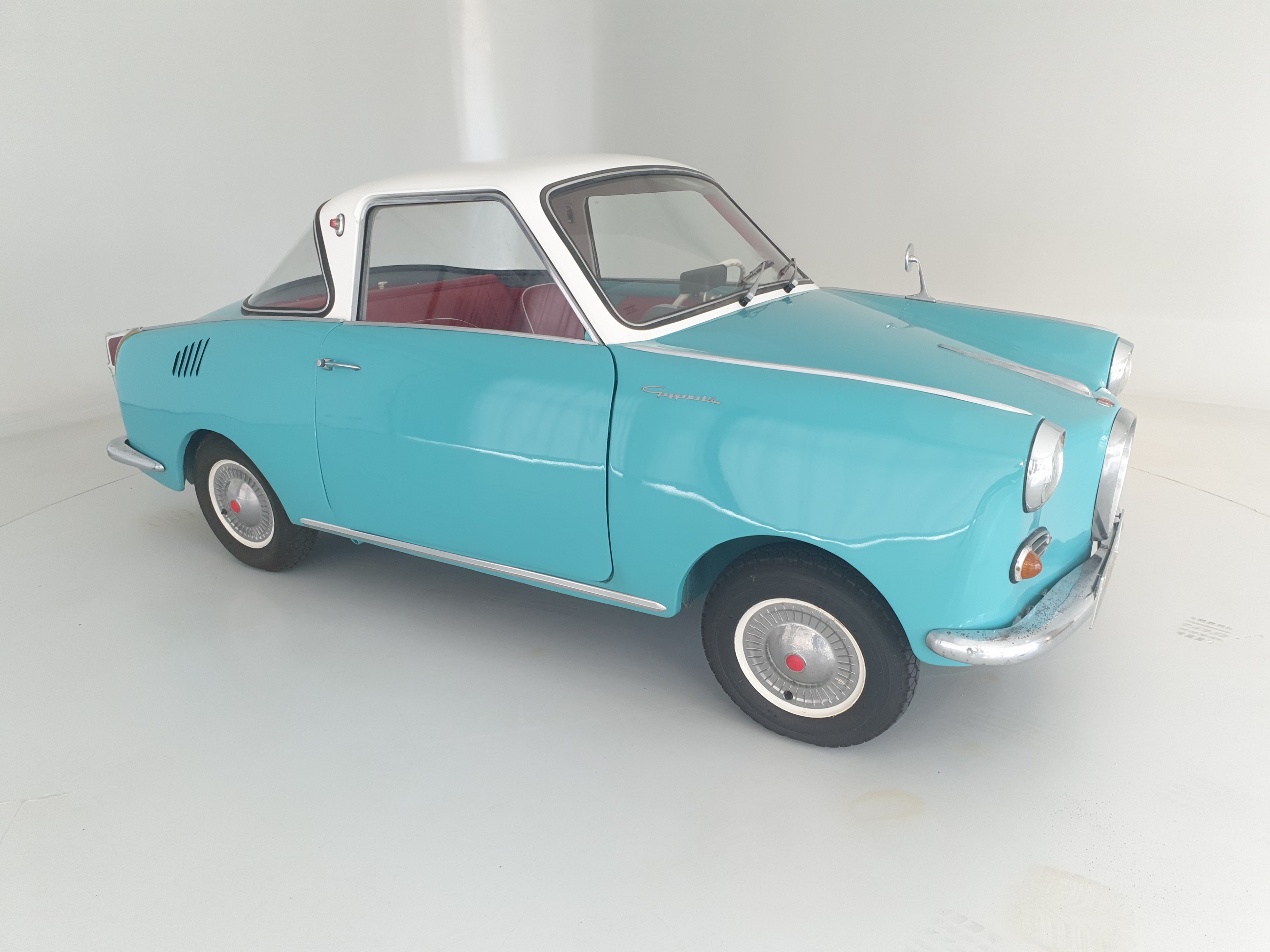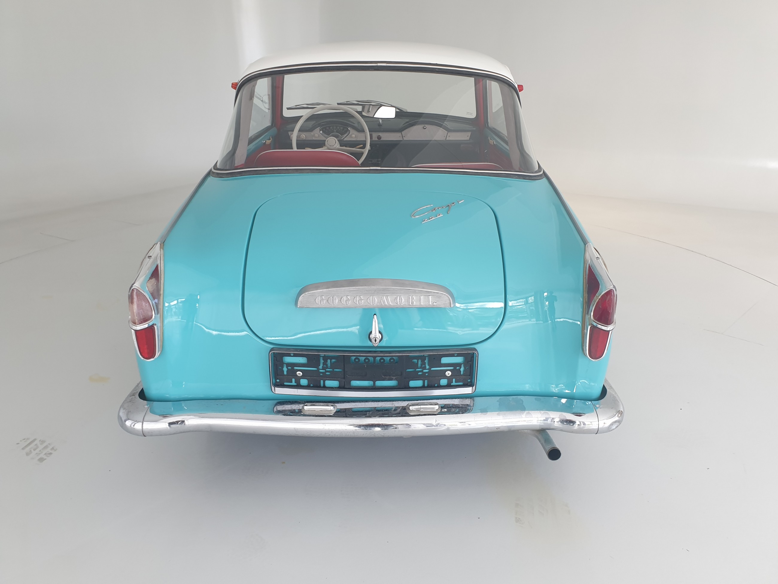 Natürlich darf auch der Innenraum nicht zu kurz kommen. Dieser versprüht natürlich wie es für ein Goggo üblich war einen etwas schlichteren, aber dennoch liebenswerten Charme. Die Vordersitze sind komplett neu gemacht und neu bezogen worden. Die hinteren Sitze befinden sich noch in einem gepflegten originalen Zustand, daher wurde hier auch nichts gemacht. Abgerundet wird der Innenraum durch den neuen Dachhimmel.