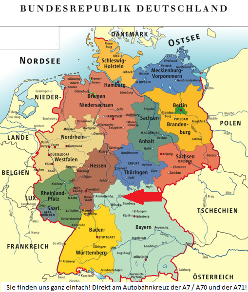 - Sie finden uns ganz einfach! Direkt am Autobahnkreuz der A7 / A70 und der A71 zwischen Oberndorf und Bergrheinfeld.