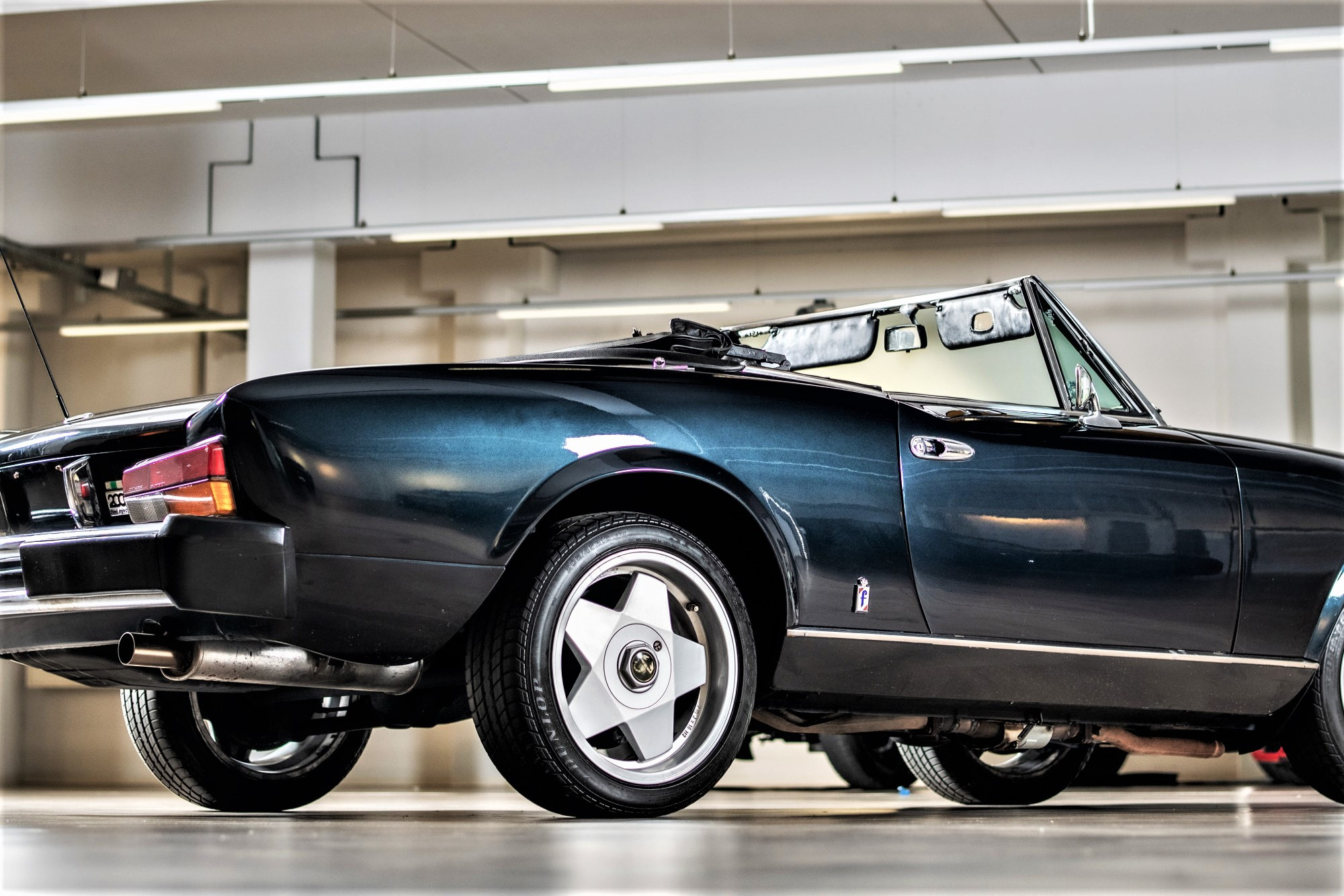 Die 40 Jahre gingen natürlich nicht unbemerkt an unserem Schmuckstück hier vorbei, daher hat es sich der Vorbesitzer, ein Profi-Lackierer, der sein Handwerk mit viel Leidenschaft ausführt, zur Aufgabe gemacht, den Spider komplett selbst zu restaurieren. Er baute den Spider komplett auseinander, teilweise zum Eurospider um, fügte alles, darunter das Dach, runderneuert wieder zusammen und verbaute sogar noch ein paar spezielle Extras. Darunter die Mittelkonsole, Wurzelholz und die elektrischen Fensterheber. Außerdem tauschte er die Kunstlederausstattung gegen qualitativ hochwertiges Echtleder aus. Der Motor wurde zwei Mal komplett überholt und abgedichtet. Die Karosserie wurde sandbestrahlt und in Wagenfarbe lackiert. Auch verfügt dieses Prachtexemplar über eine Alarmanlage, sowie tollen Alufelgen.
